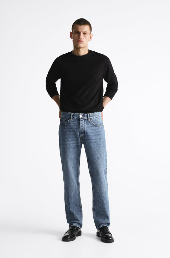 Straight-Fit-Jeans. Five-Pocket-Stil. In verwaschener Optik. Reißverschluss und Knopf vorne